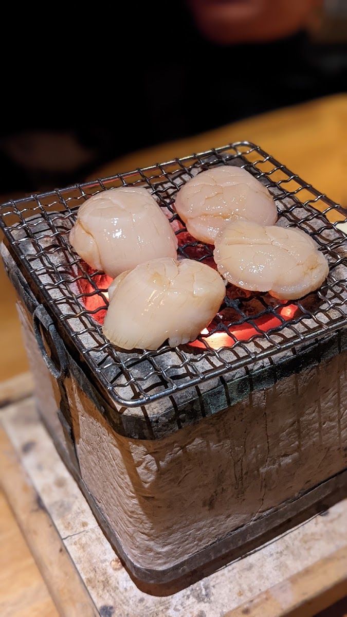 Another standout experience at Taimeshi Ginmaru is the comforting 鯛めし あおさの味噌汁. The sea bream rice paired with aromatic miso soup made with aosa seaweed brings warmth and depth to the meal. It feels hearty without being heavy, making it an excellent centerpiece for dinner. If you enjoy shellfish, the ホタテ is also worth exploring on the menu. The flavor is naturally sweet and pairs well with other small plates ordered for the table.