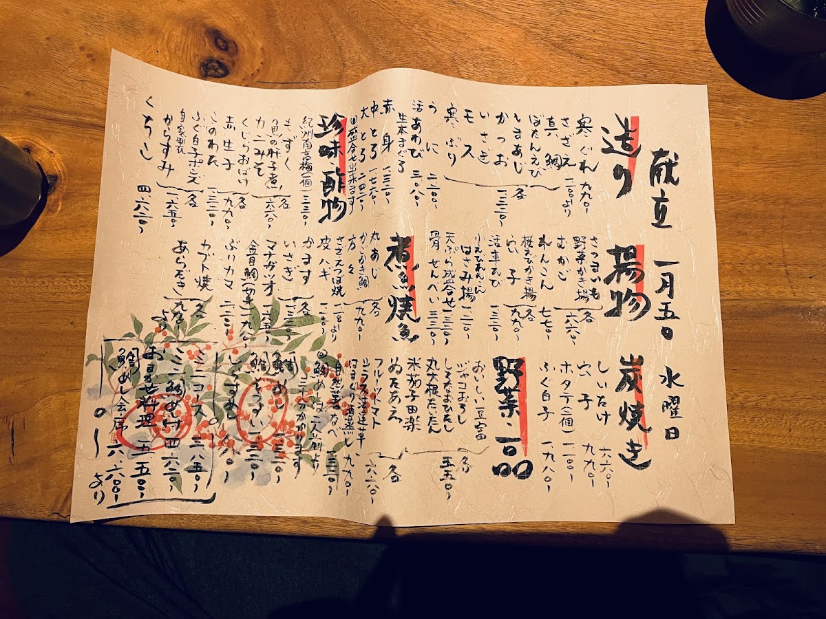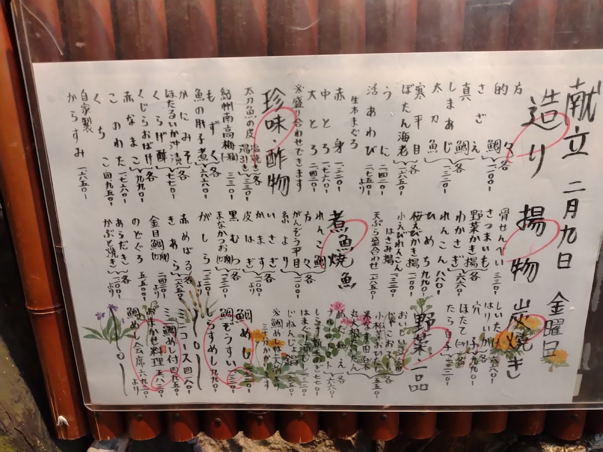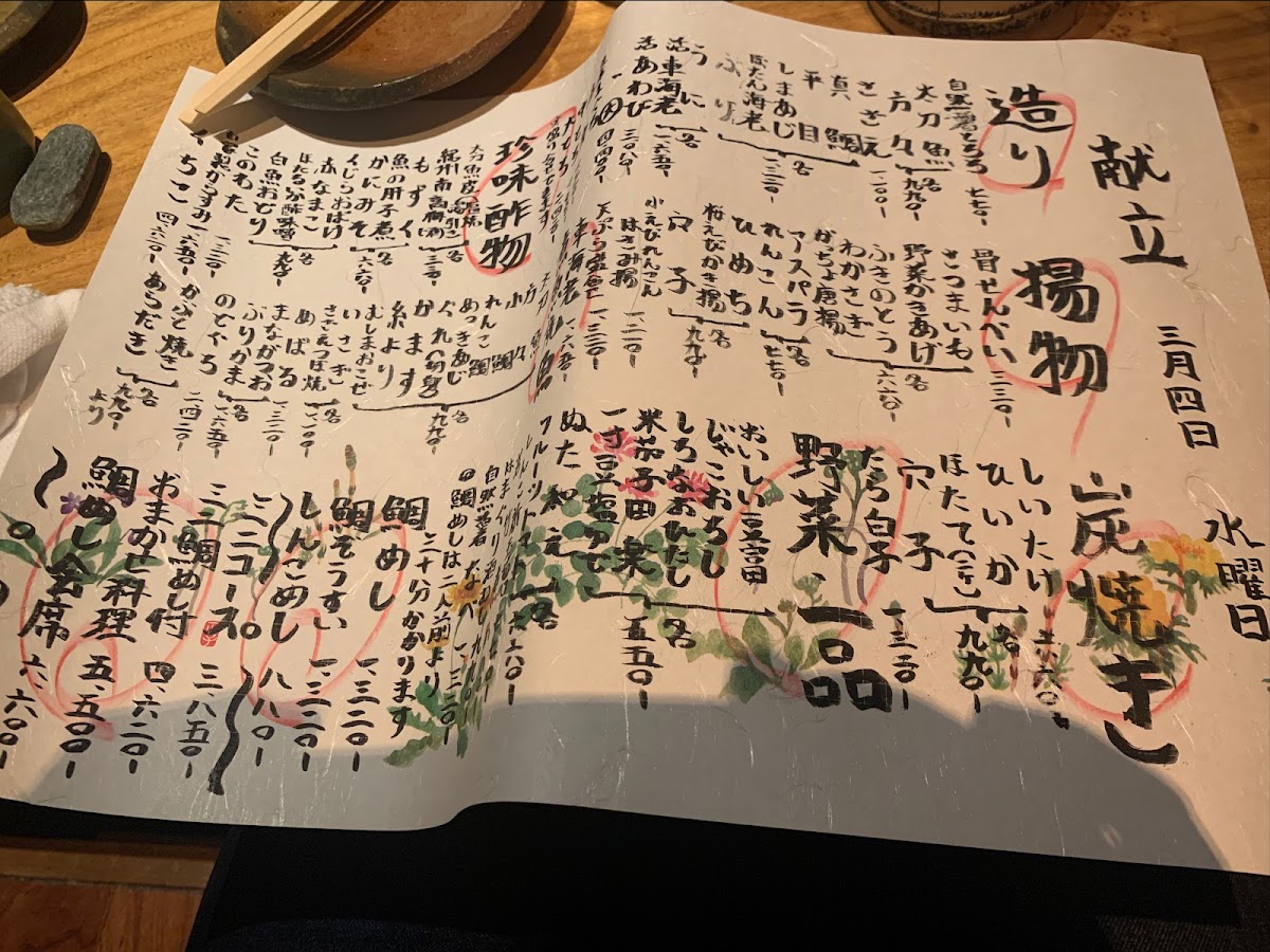 The menu at Taimeshi Ginmaru offers a delightful selection of traditional Japanese dishes, showcasing the freshest ingredients with a focus on seafood. The 豪華刺身盛り is a must-try, featuring an exquisite array of fresh sashimi that highlights the restaurant’s dedication to quality. For those who enjoy crispy textures, the 天ぷら盛り合わせ delivers a perfectly battered mix of vegetables and seafood, making each bite satisfying. The 鯛めし あおさの味噌汁 is a comforting dish, with delicate sea bream rice served alongside a rich, flavorful miso soup. The ホタテ is another standout, offering tender scallops with a subtle sweetness that complements the dish’s natural flavors. For a more adventurous option, the どくろの塩焼き brings a unique salt-grilled skullfish, sure to intrigue any curious diner. The 魚の煮付け provides a traditional braised fish, tender and perfectly seasoned, while the 白ハマグリの酒蒸し features steamed clams that capture the essence of the sea. Light yet refreshing, the Fresh Tomato with Salt and Seasonal Vegetables add a burst of freshness to the menu, offering a balance to the heavier dishes. Other side dishes like わさび, もずく酢, and 自然薯鍋 offer bold, natural flavors that pair well with the seafood. The 鯛の塩焼き and 米ナス (grilled eggplant) showcase the skillful preparation of both seafood and vegetables, bringing out the best in each ingredient. For those seeking a smooth and delicate appetizer, the スペシャル冷奴 is a refreshing tofu dish that combines texture and taste in perfect harmony. Finally, the みそ汁 and 今日のお魚 complete the meal with traditional flavors, while the 白子焼き offers a rich and creamy option for those who appreciate the nuances of fish roe. The menu at Taimeshi Ginmaru beautifully combines both familiar and daring options, each offering an unforgettable dining experience.